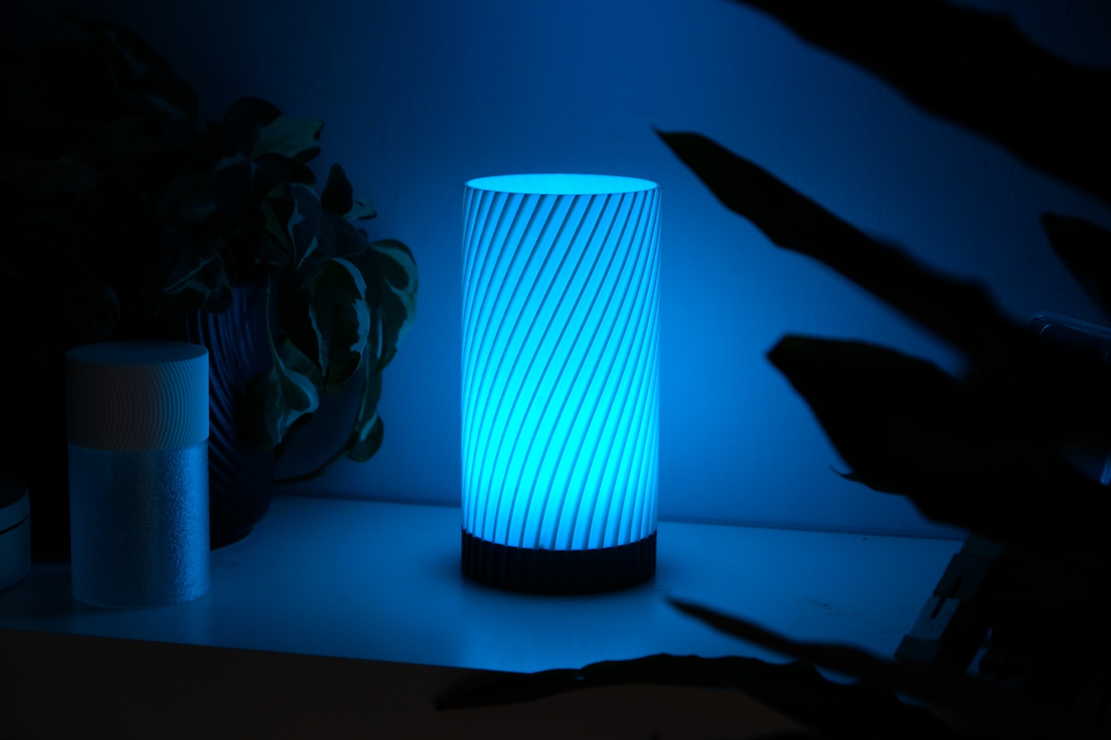 Lampa jest kompatybilna z przewodowymi i bezprzewodowymi zestawami RGB od Bambu Lab. Klosz najlepiej drukować z jasnego PLA lub przezroczystego PETG dla optymalnego rozpraszania światła, a podstawa może być w dowolnym kolorze. Montaż jest prosty – elementy łączą się dzięki pinom ustalającym, a całość po złożeniu daje przyjemne, nastrojowe oświetlenie.